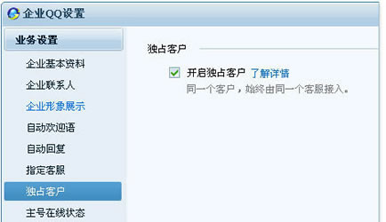 開啟獨占客戶是指,如果初次訪問的客戶手動選擇或被系統(tǒng)自動分配給了某個工號為其服務,那么該客戶再次來訪時,系統(tǒng)自動將其分流至之前為其提供服務的工號為其服務,其他工號無法主動向其發(fā)起會話。