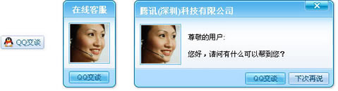 方法1: 在您企業(yè)的網(wǎng)站,設置 “企業(yè)QQ在線狀態(tài)”代碼后,客戶就能與您的員工進行會話 企業(yè)QQ在線狀態(tài):您的客戶打開您的企業(yè)網(wǎng)站時將看到的是您的企業(yè)QQ圖標,客戶點擊后,可直接您的員工進行會話。 “企業(yè)QQ在線狀態(tài)”樣式列舉: ![]() 方法2:您可以將企業(yè)QQ號碼告訴您的客戶,并讓您的客戶將您的企業(yè)QQ號添加為好友進行會話。 您的客戶可通過個人QQ的“查找聯(lián)系人/群/企業(yè)”功能找到您的企業(yè)QQ,并添加為好友。如添加好友成功您的客戶則可以像與其他QQ好友在線聊天一樣,向您的企業(yè)QQ發(fā)起會話、發(fā)送圖片、截圖或傳送文件。