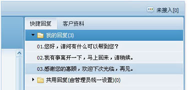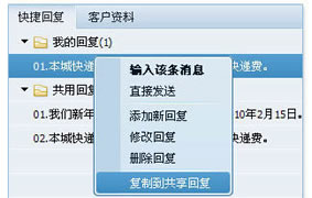 員工可設置部分常用的回復用語、禮貌用語等作為快捷回復語。使員工與客戶的溝通更快捷、更高效。 ![]() 快速回復功能除了員工自行設置快捷回復語之外,還支持快速回復內容的共享,每個工號都可以在“我的回復”區(qū)域里右鍵點擊,將自己的快速回復內容復制到共享回復中,便于其他工號在答復咨詢時使用。 ![]() 客戶資料:記錄來訪客戶詳細資料